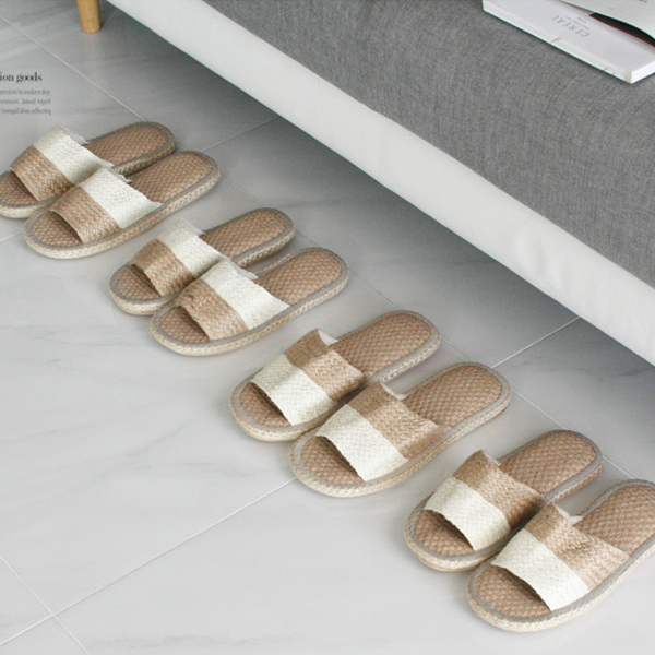 남녀 배색 왕골 슬리퍼