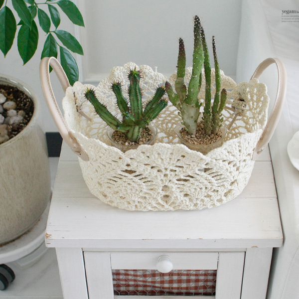 레이스 타원 손잡이 바스켓 2P